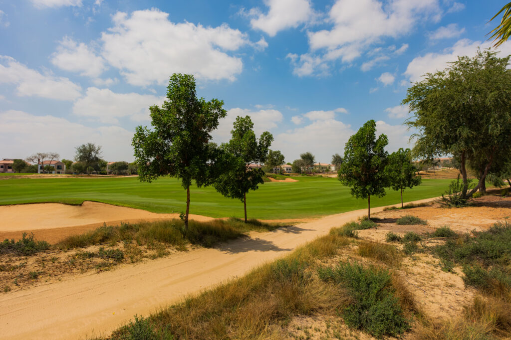 The Fire Course at Jumeirah Golf Estates, also designed by Greg Norman, offers a striking contrast to the Earth Course, drawing inspiration from the warm tones and rugged character of desert-style golf. Its layout features firm fairways, sculpted bunkers, native grasses, and natural earth hues that blend seamlessly with the surrounding landscape. Designed to reward strategy and precision, the Fire Course delivers a more open, flowing playing experience while still challenging golfers with thoughtfully placed hazards and contouring. Known for its distinctive aesthetic and calm, spacious atmosphere, the Fire Course is an integral part of JGE’s championship reputation and enhances the community’s appeal for those seeking world-class golf in a refined residential setting.